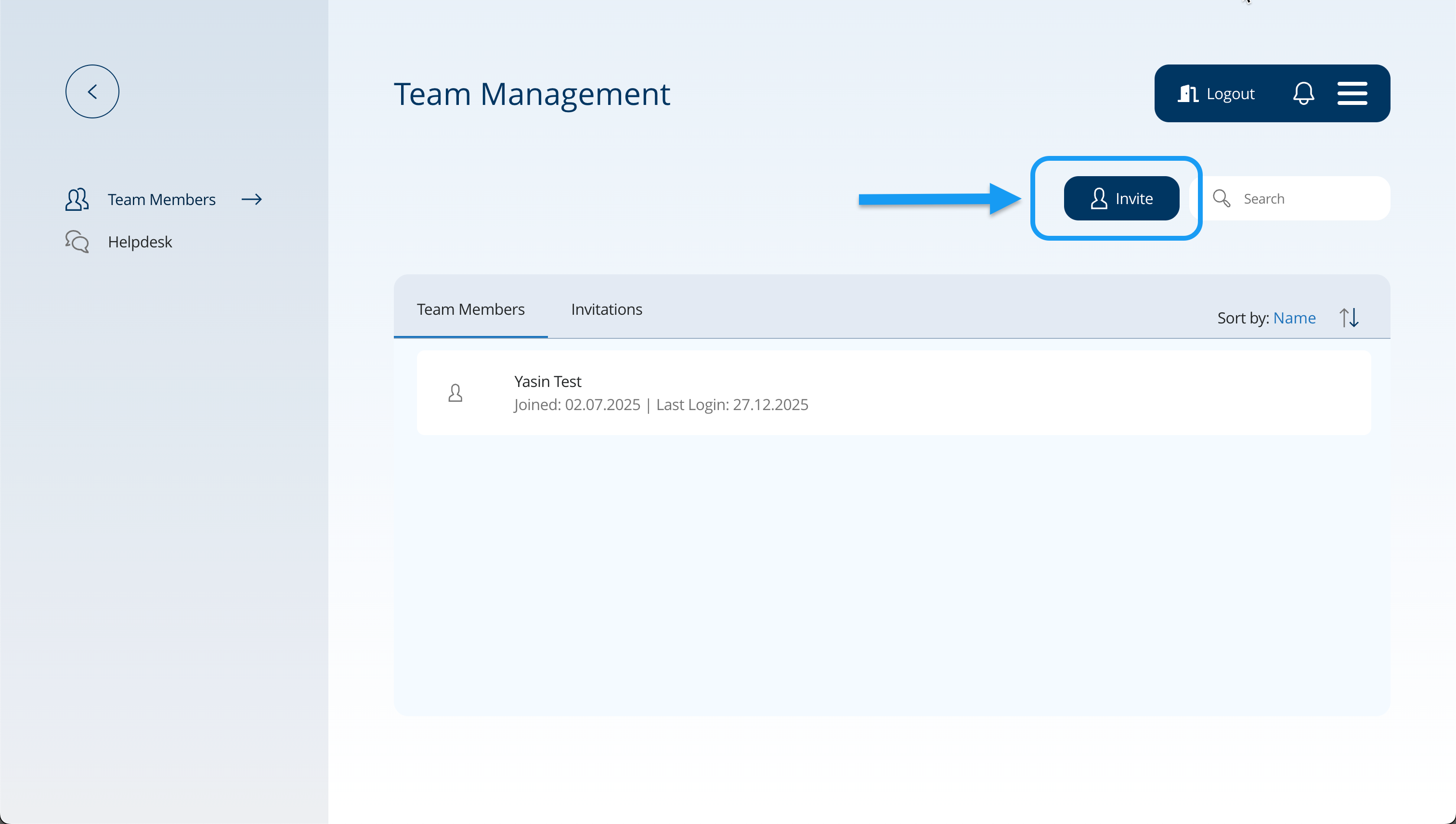 - Navigiere im Hauptmenü zu Team Management.