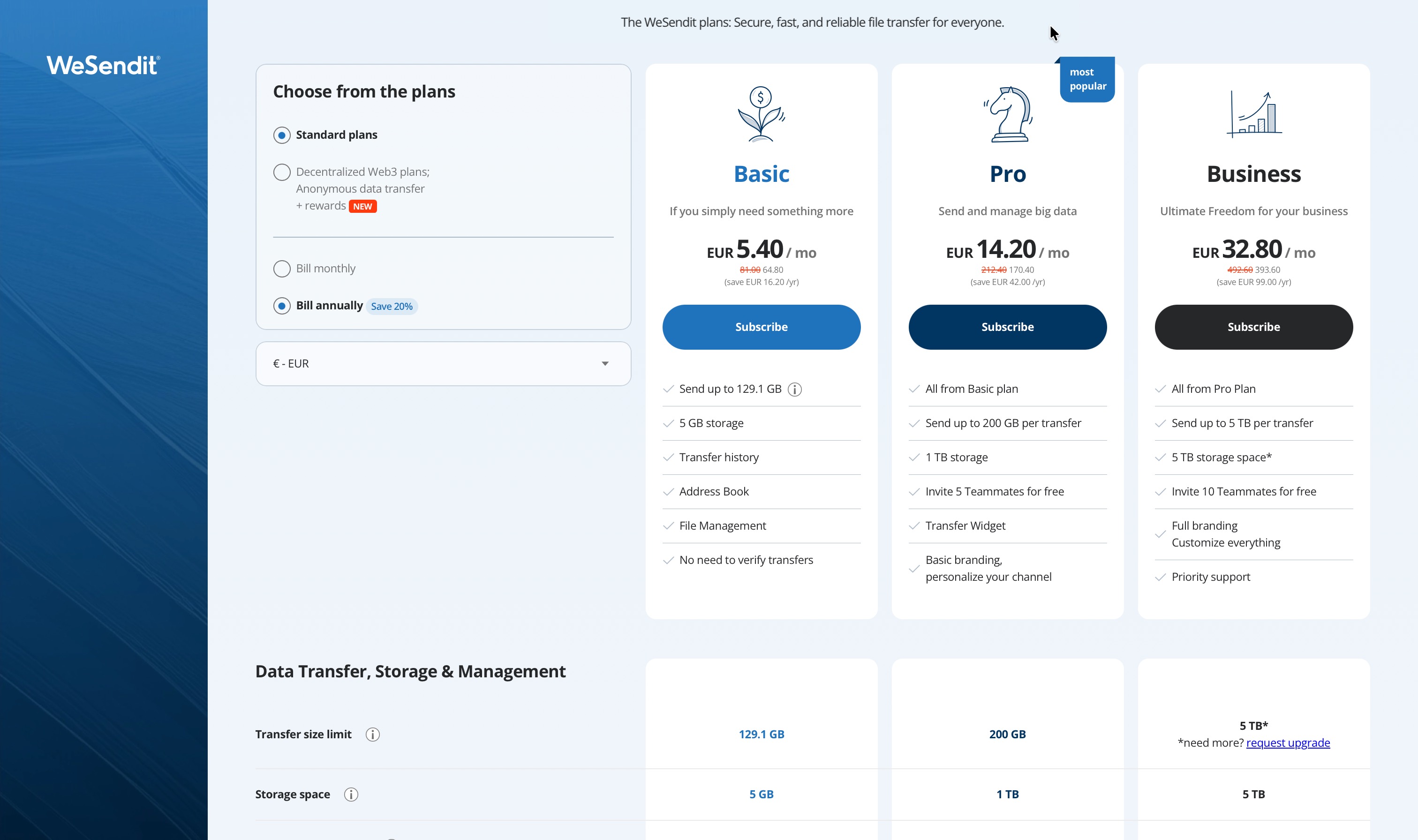 WeSendit® Plans & Pricing: The Right Choice for Your Needs