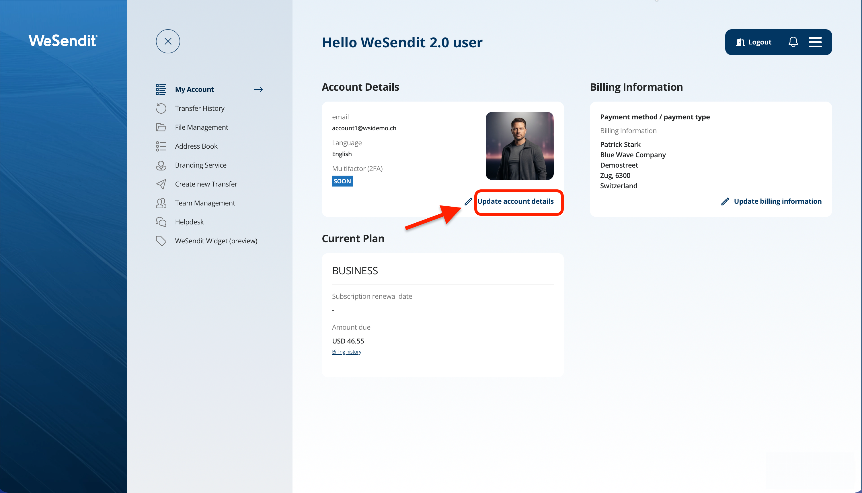 - Navigate to the "My Account" section and click on "Update account details".