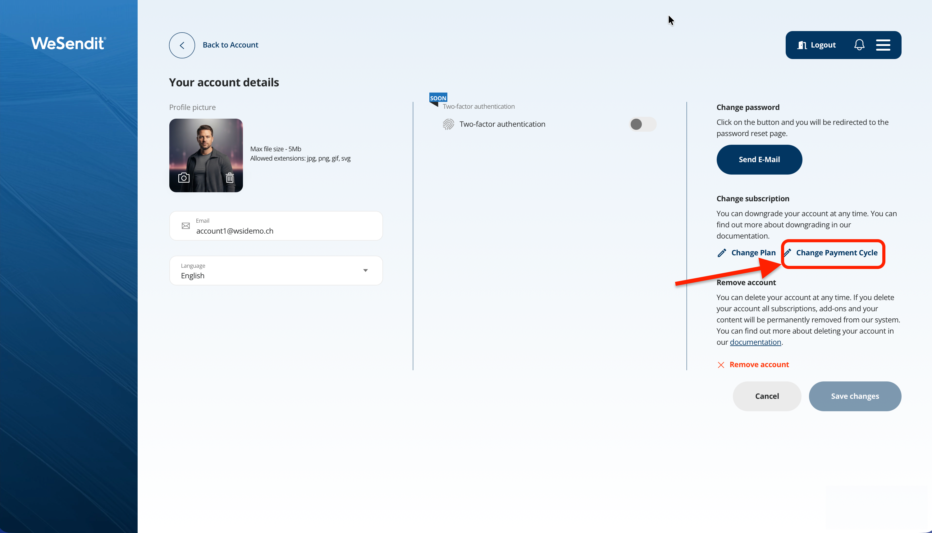 - In the "Change subscription" section, select the "Change billing cycle" option.