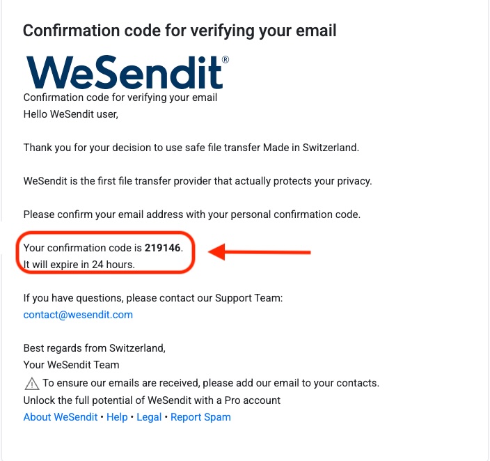 Once you have copied the code, simply enter it to be forwarded to your new WeSendit dashboard.